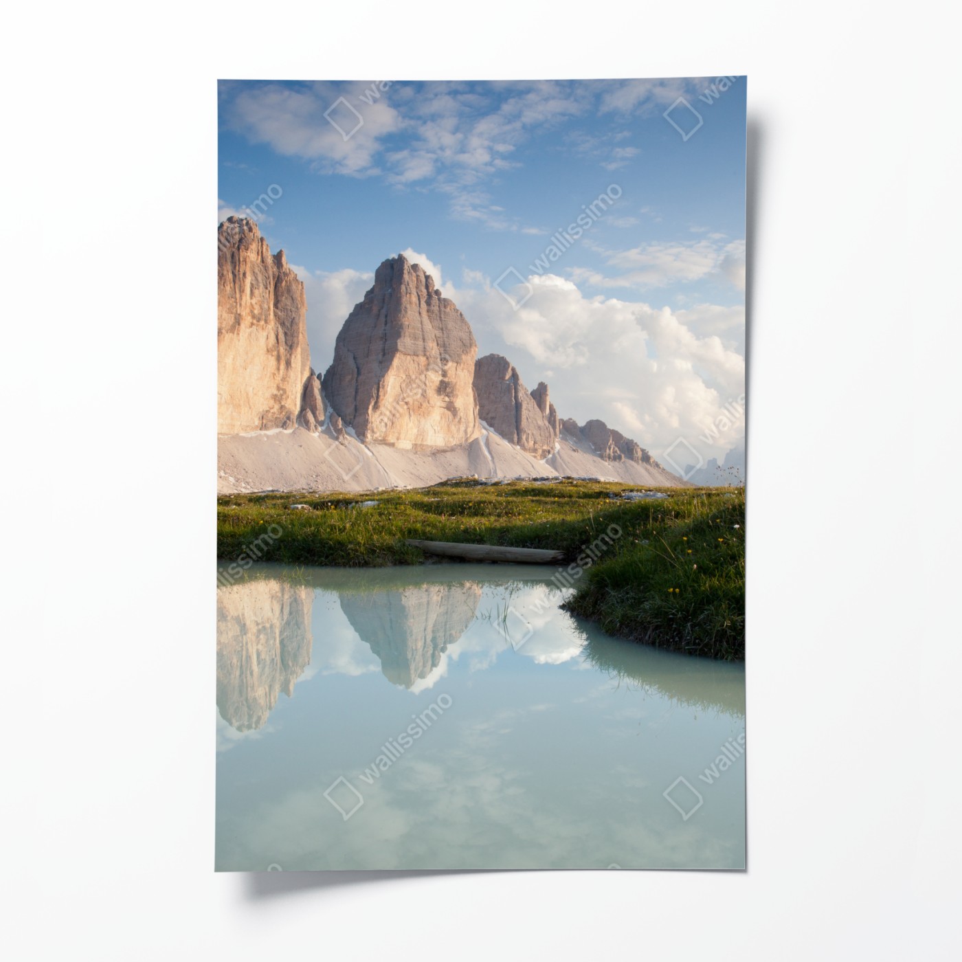 Plakat Słoneczne alpejskie szczyty odbite w spokojnym jeziorze