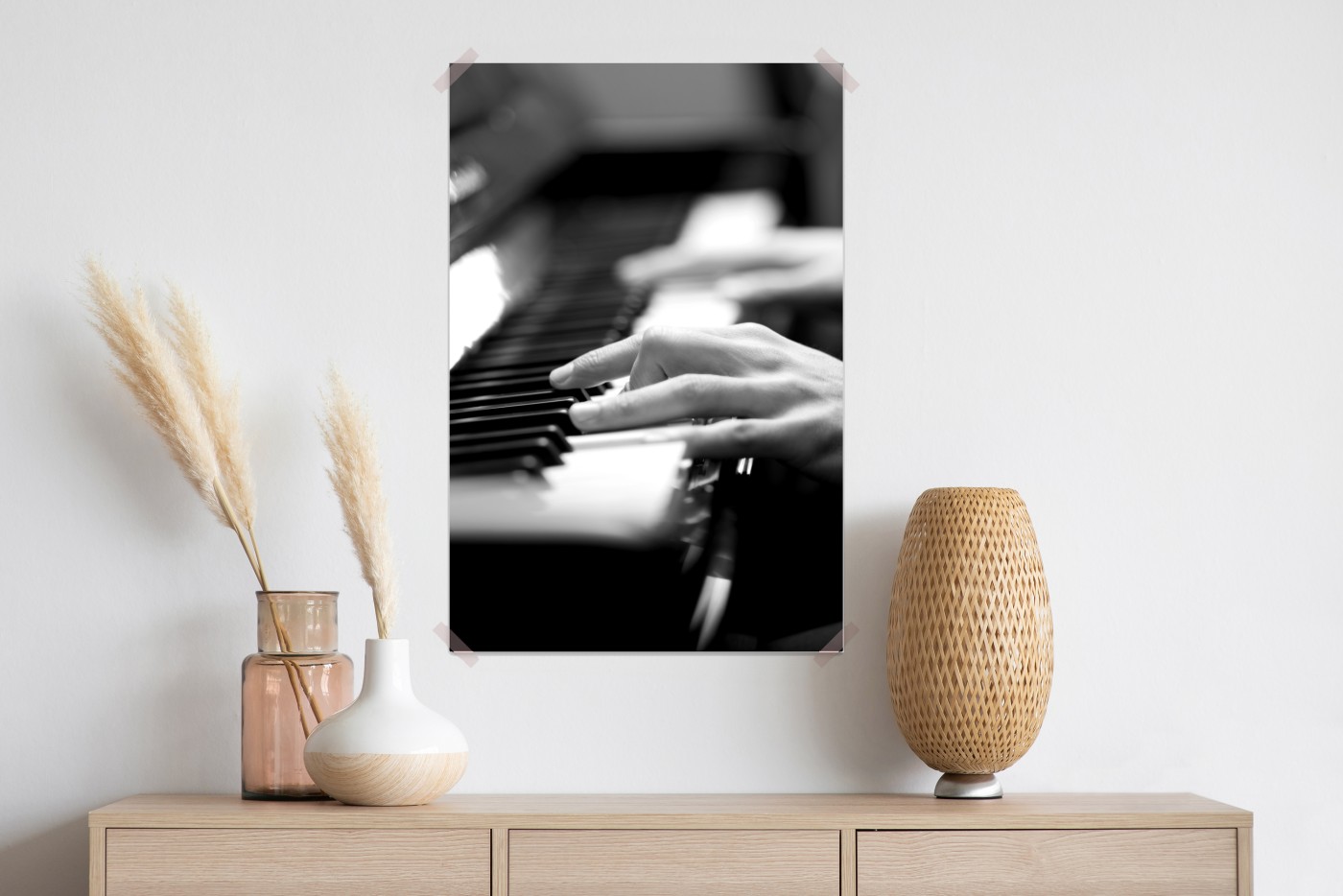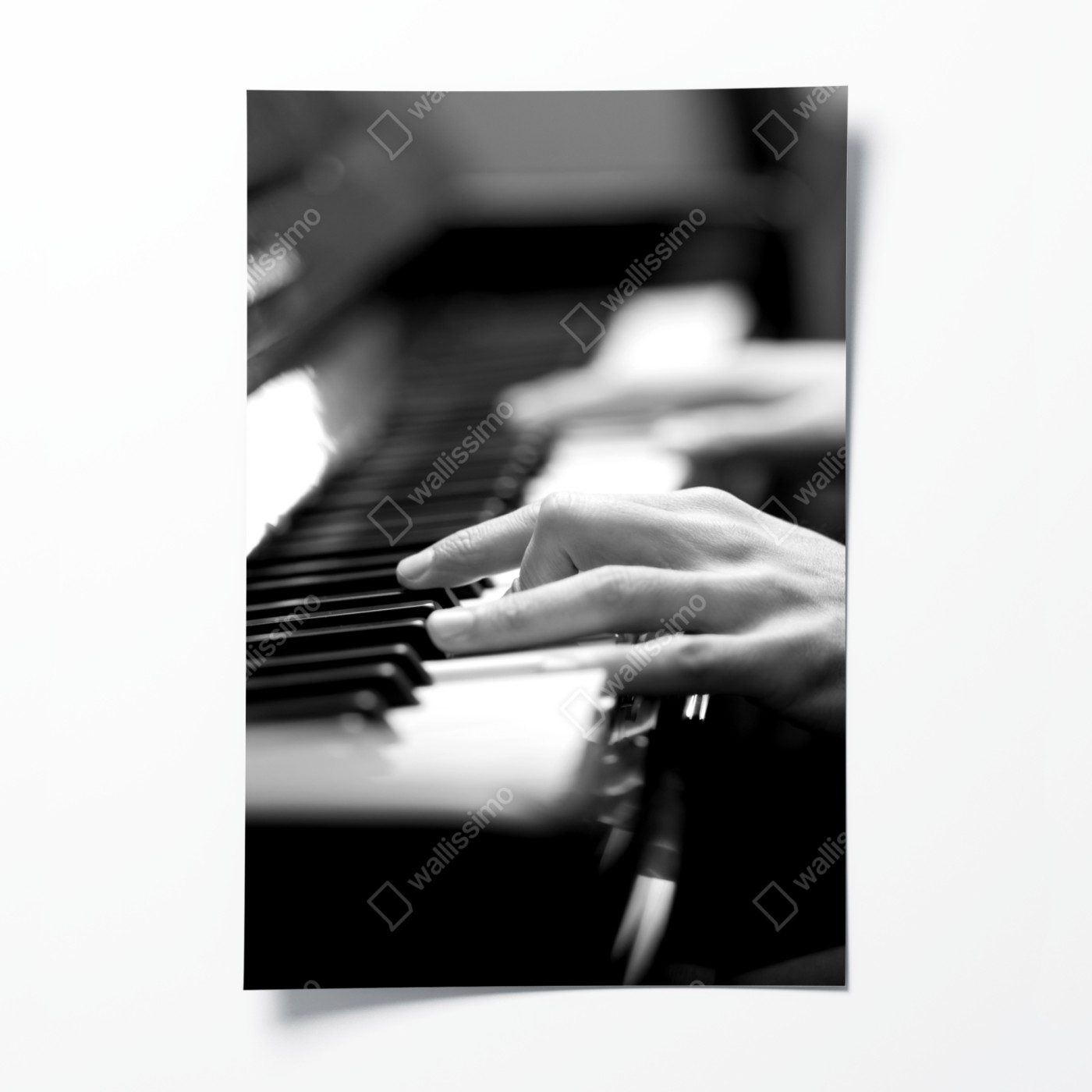 Plakat ręce przy klawiaturze fortepianu w czerni i bieli – Wallissimo®