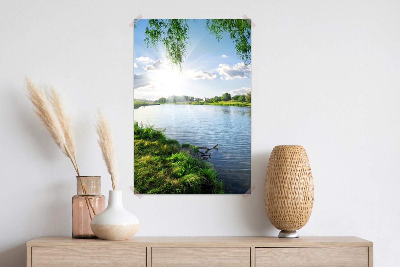Plakat nasłoneczniony brzeg rzeki z bujną zielenią – Wallissimo®