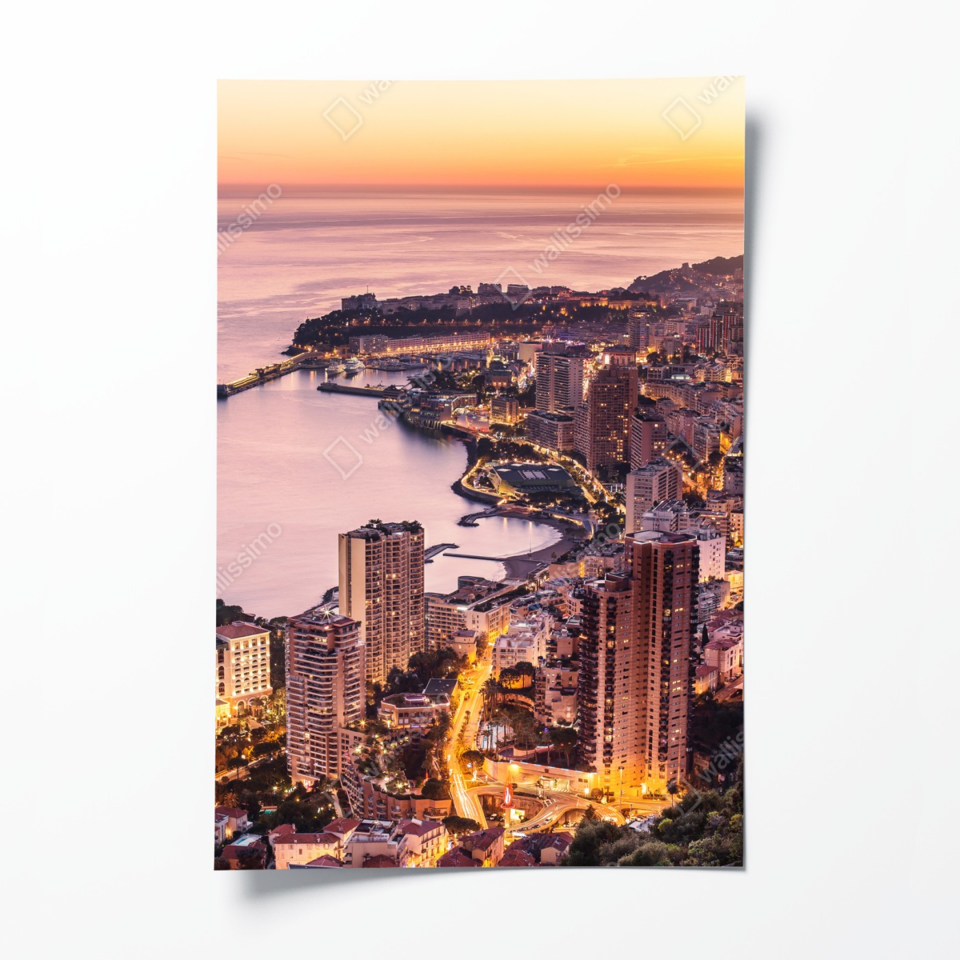 Plakat Zachód słońca nad miejskim wybrzeżem