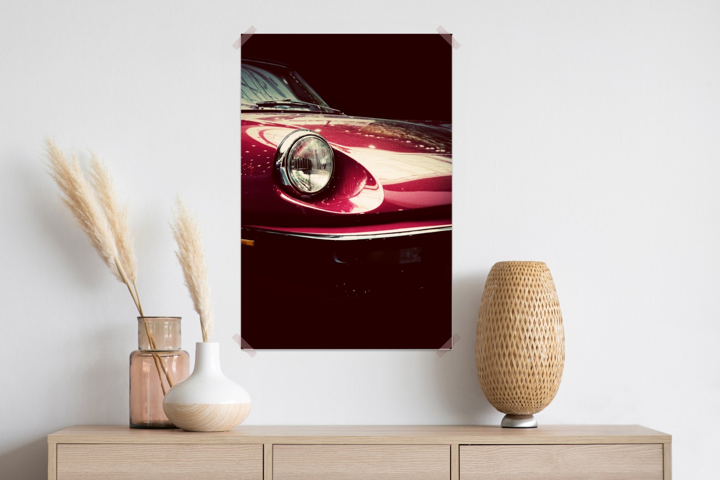 Plakat Zbliżenie klasycznego czerwonego samochodu sportowego