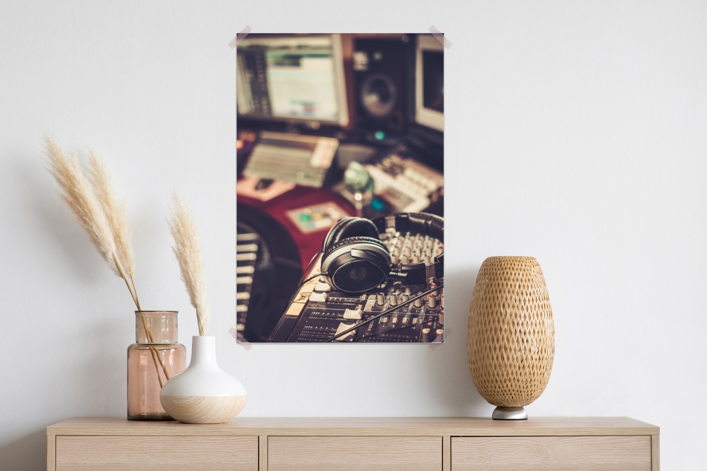 Plakat Vintageowe studio nagraniowe przy konsoli mikserskiej